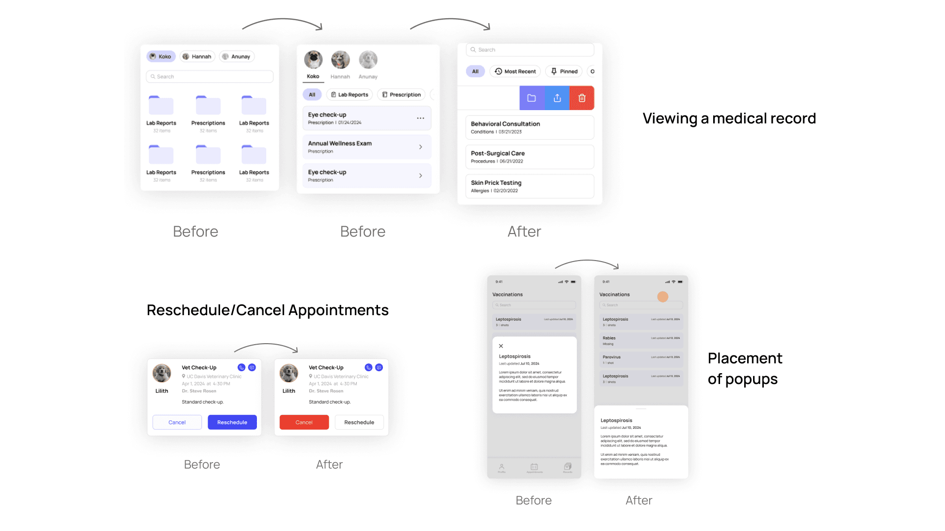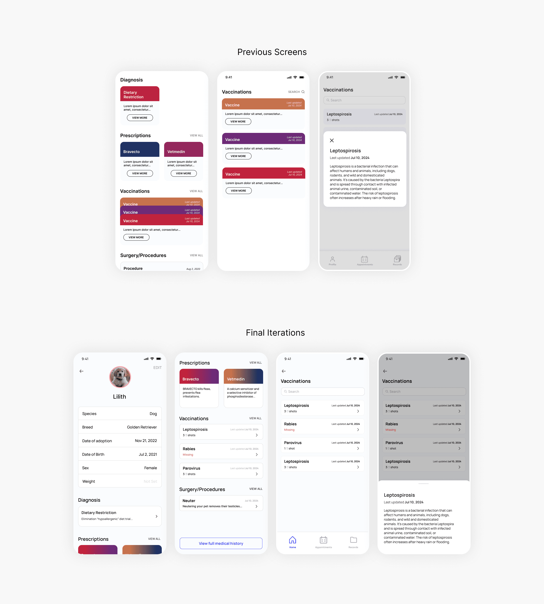 Our challenge was to bring clarity to a complex, high-stakes domain by unifying records, improving information accessibility, and simplifying navigation—while maintaining medical accuracy and trust. The solution needed to support users of all ages and technical backgrounds, minimizing cognitive load without sacrificing the depth of information required for confident pet care decisions.