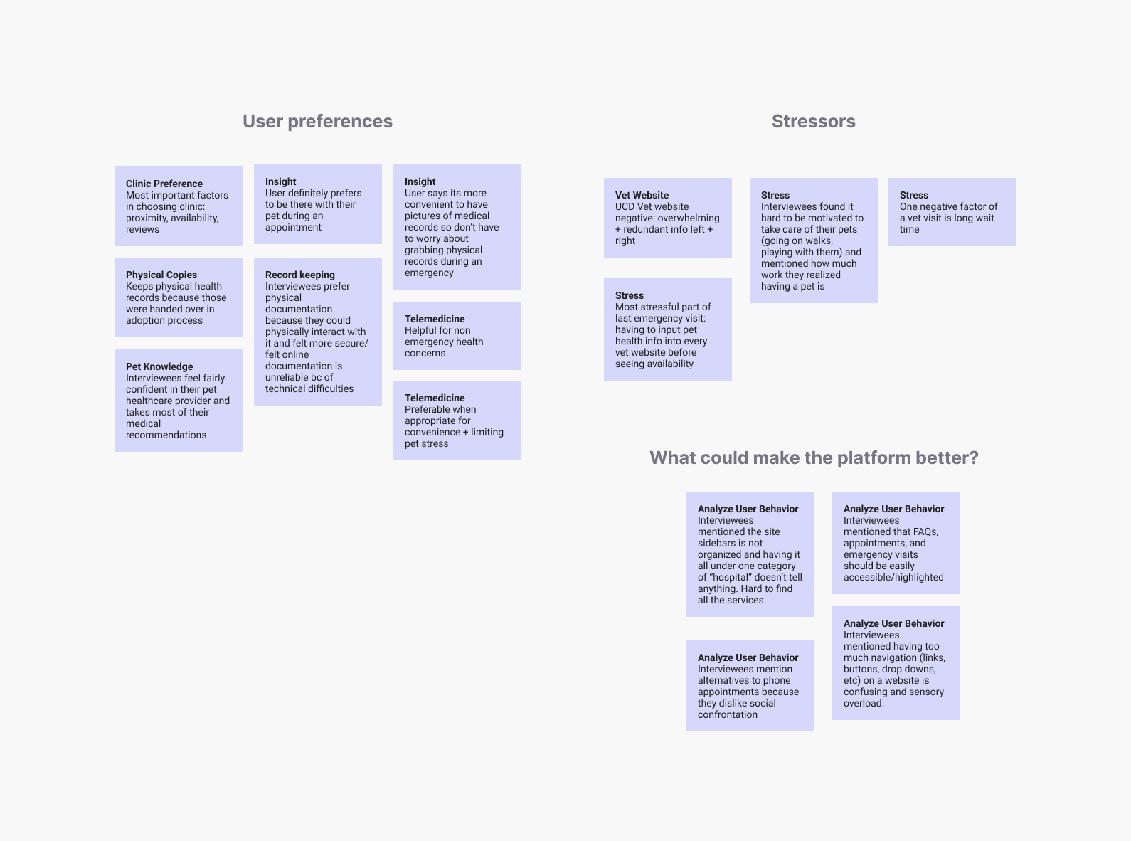 I conducted eight in-person interviews with current pet owners to understand their experience with telemedicine and how we could enhance it.