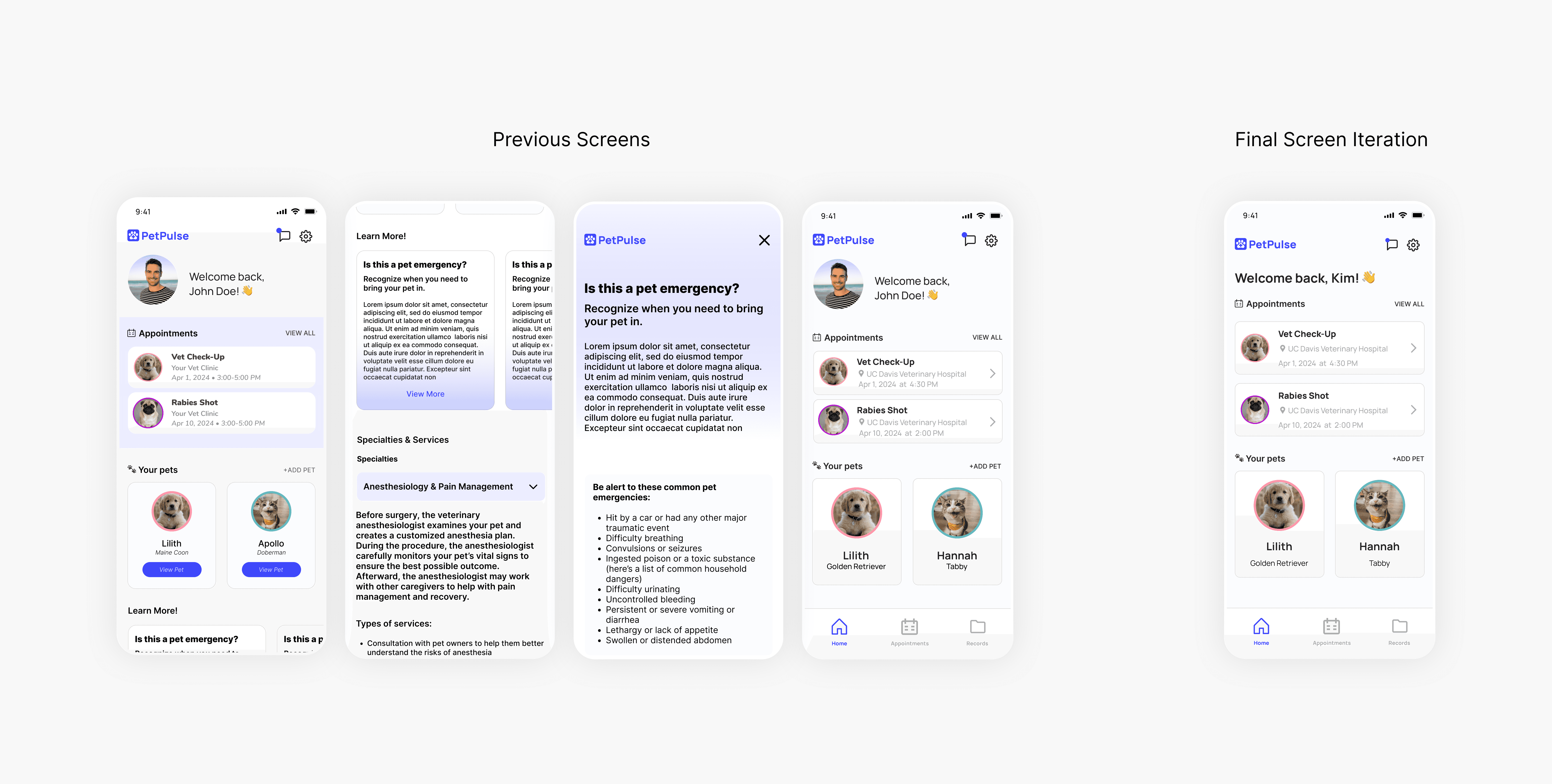 Our team was tasked with creating an integrated platform to simplify healthcare for pet owners. Through rigorous research and analysis, my team and I informed the design and development of an interactive prototype that facilitates seamless management of pet healthcare records and appointments.